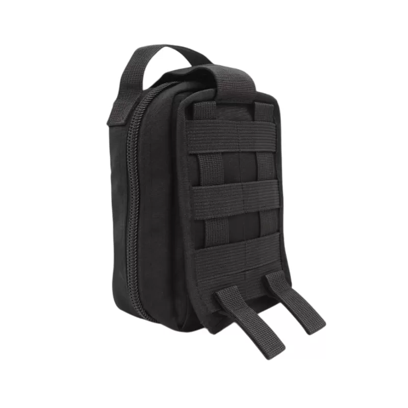 Подсумок изготовлен из синтетической водоотталкивающей ткани. Имеется ручка для быстрого открывания, а также съемная панель с системой крепления типа молле. Во внутренней части подсумка расположены эластичные крепления и карманы.