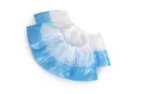 Бахилы EleGreen двойные Super 65 бело-голубые с двойной резинкой. Надежно фиксируются на обуви, не пропускают грязь и влагу, надежно защищают стерильное помещение от бактерий.