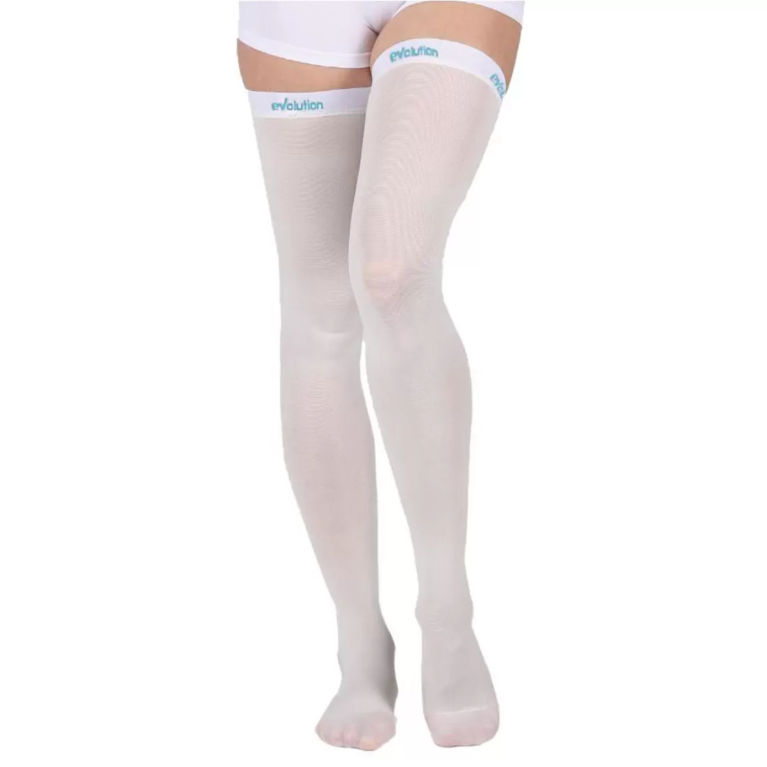 Чулки антиэмболические Evolution TK.933E 1 класса компрессии для операции, белые. Подходят для мужчин и женщин. Предназначены для профилактики венозных тромбозов и венозных тромбоэмболических осложнений (ВТЭО) в условиях стационара.