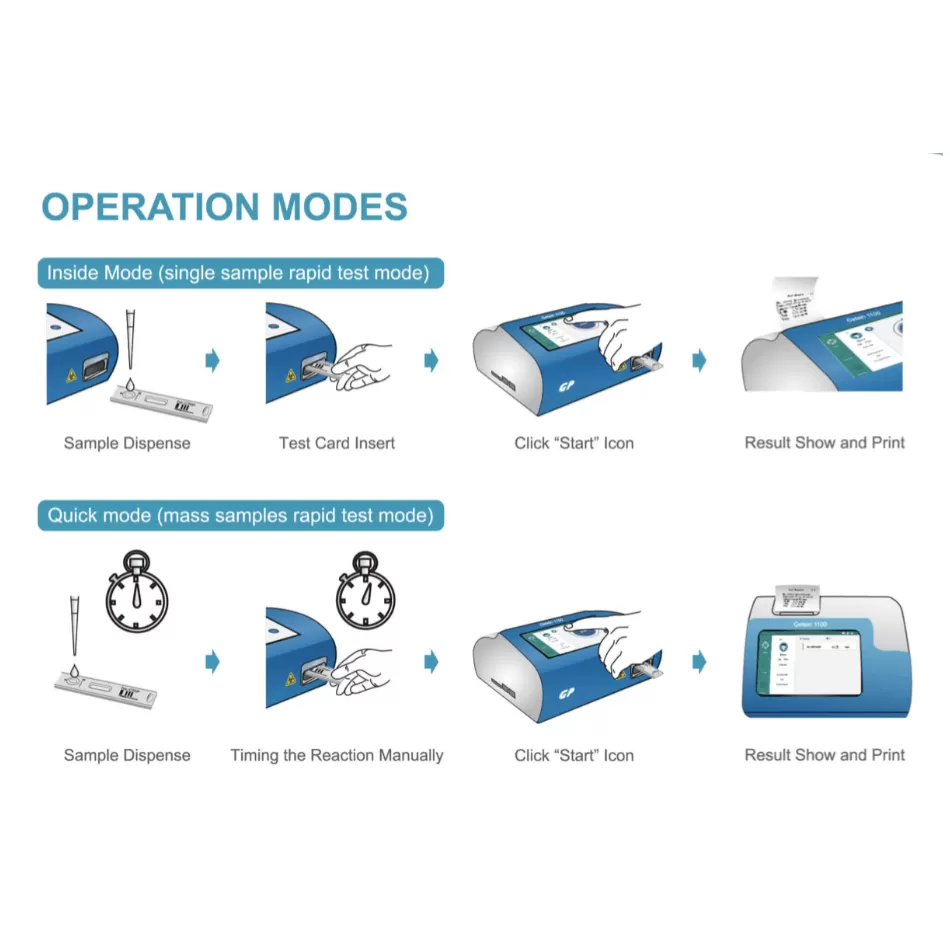 - Итог виден на кассете (она является носителем иммуноаналитического реактива после взаимодействия с клинической пробой пациента);