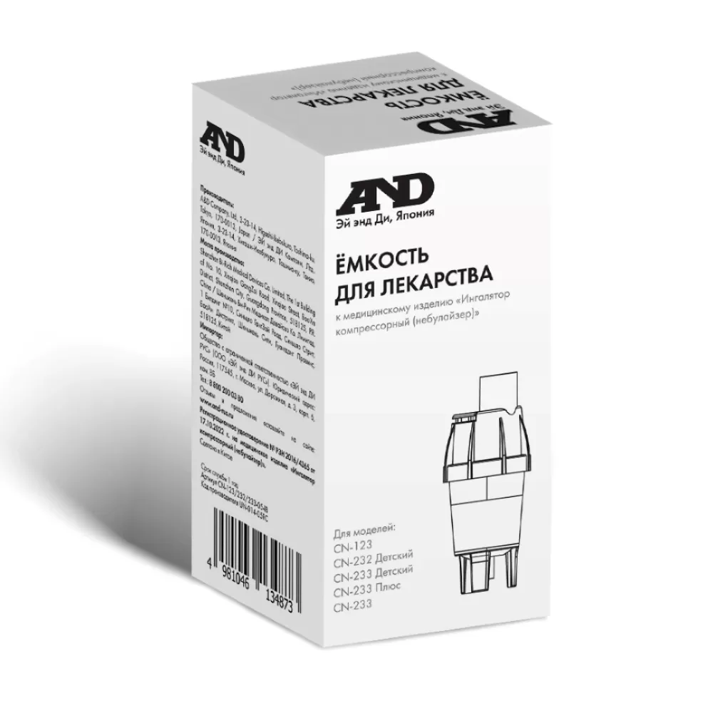 Резервуар для лекарств для ингаляторов CN-123, CN-233, CN-233 ПЛЮС, CN-232 ДЕТСКИЙ, CN-233 ДЕТСКИЙ, новых моделей AND CN-232, предназначен для измельчения лекарственных средств до аэрозольного состояния c оптимальным размером для проведения ингаляционной терапии всей дыхательной системы.Все комплектующие сертифицированы, протестированы и разрешены к применению.