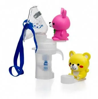 - Небулайзер понравится детям! Ингаляции теперь можно делать, закрепив на небулайзерной камере веселые аксессуары: желтого медвежонка или розового зайца. Небулайзер подойдет для детей любого возраста ― в комплекте есть детская маска и маска для младенца.