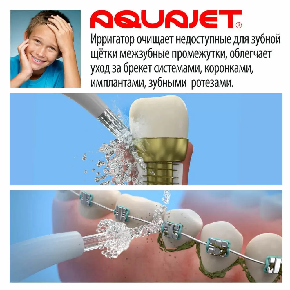 - Специальное устройство насадки позволяет струе воды достичь области, недоступные при чистке обычной зубной щеткой или нитью.