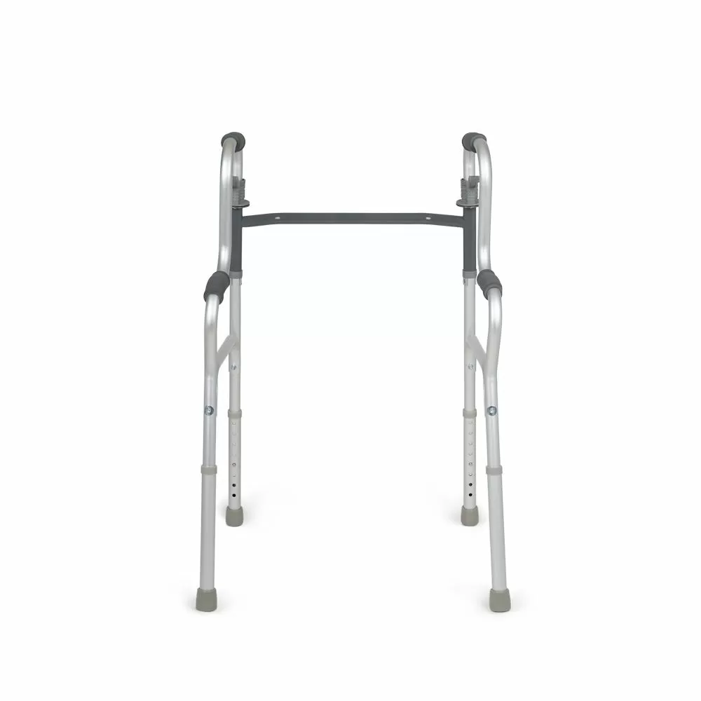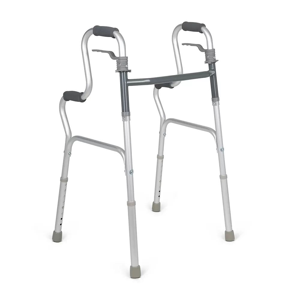- Высота ходунков регулируется за счет телескопического механизма с кнопочным фиксатором, что позволяет использование ходунков пользователями разного роста.