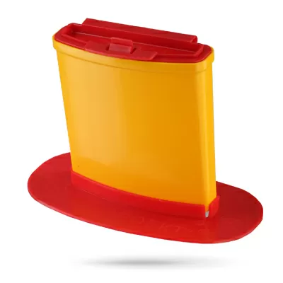 - Крышка обеспечивает герметичное закрытие в двух положениях «временно» и «окончательно» закрыто, с индикацией повторного использования - для безопасного хранения игл в процессе эксплуатации изделия.