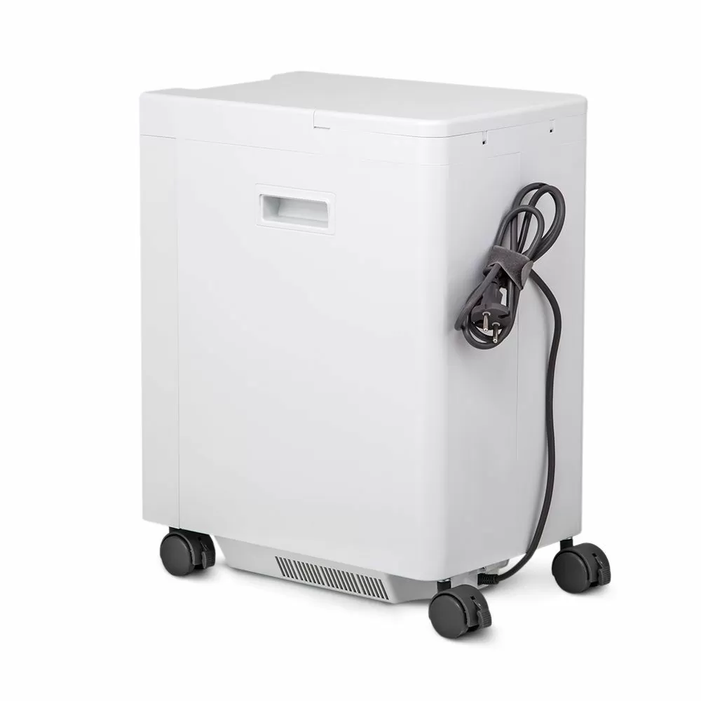 - Корпус концентратора кислорода выполнен из надежного ударопрочного пластика и снабжен удобными боковыми ручками, а также колесными опорами для легкого перемещения по дому.