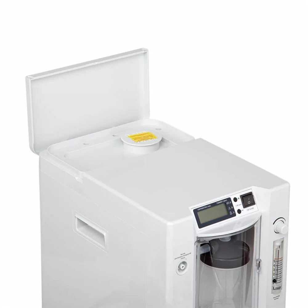 - Управление кислородным концентратором осуществляется с помощью интуитивно понятной панели с дисплеем, на котором отображаются настройки рабочего таймера. Имеется световая индикация ошибок.