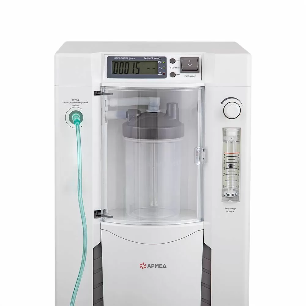 - Модель концентратора производит до 5 л воздушно-кислородной смеси в минуту. Концентратор Армед 7F-5C – прекрасный выбор для использования дома, в медучреждениях, кислородных барах, спортзалах, косметологических кабинетах. Эта модель станет любимым устройством детей, обожающих кислородные коктейли.