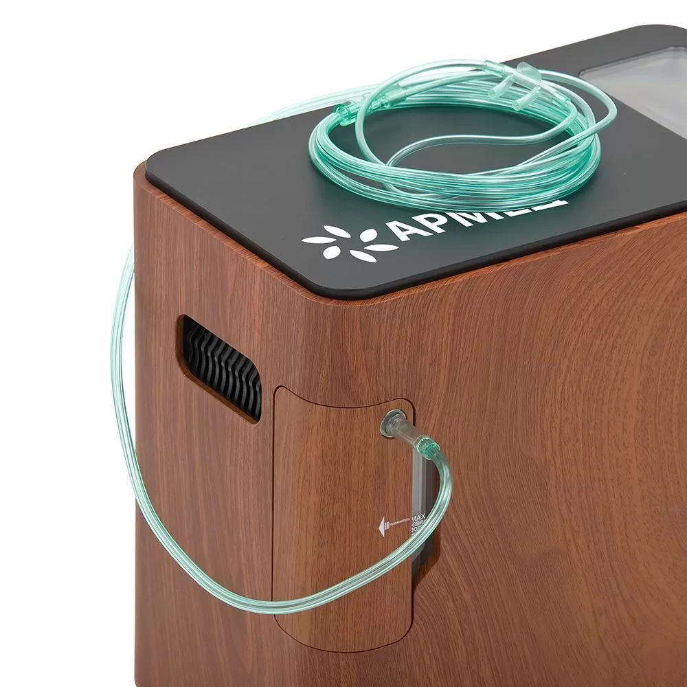 - Концентратор оформлен в приятном дизайне с имитацией бука: он сделает любой интерьер уютней, а его строгие формы прекрасно впишутся в любой уголок комнаты. Компактные размеры и привлекательный дизайн сделают кислородный концентратор стильной деталью любого интерьера.
