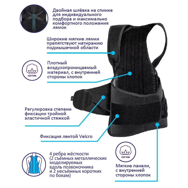- Тройная эластичная стяжка с системой застёжек «Комфорт»