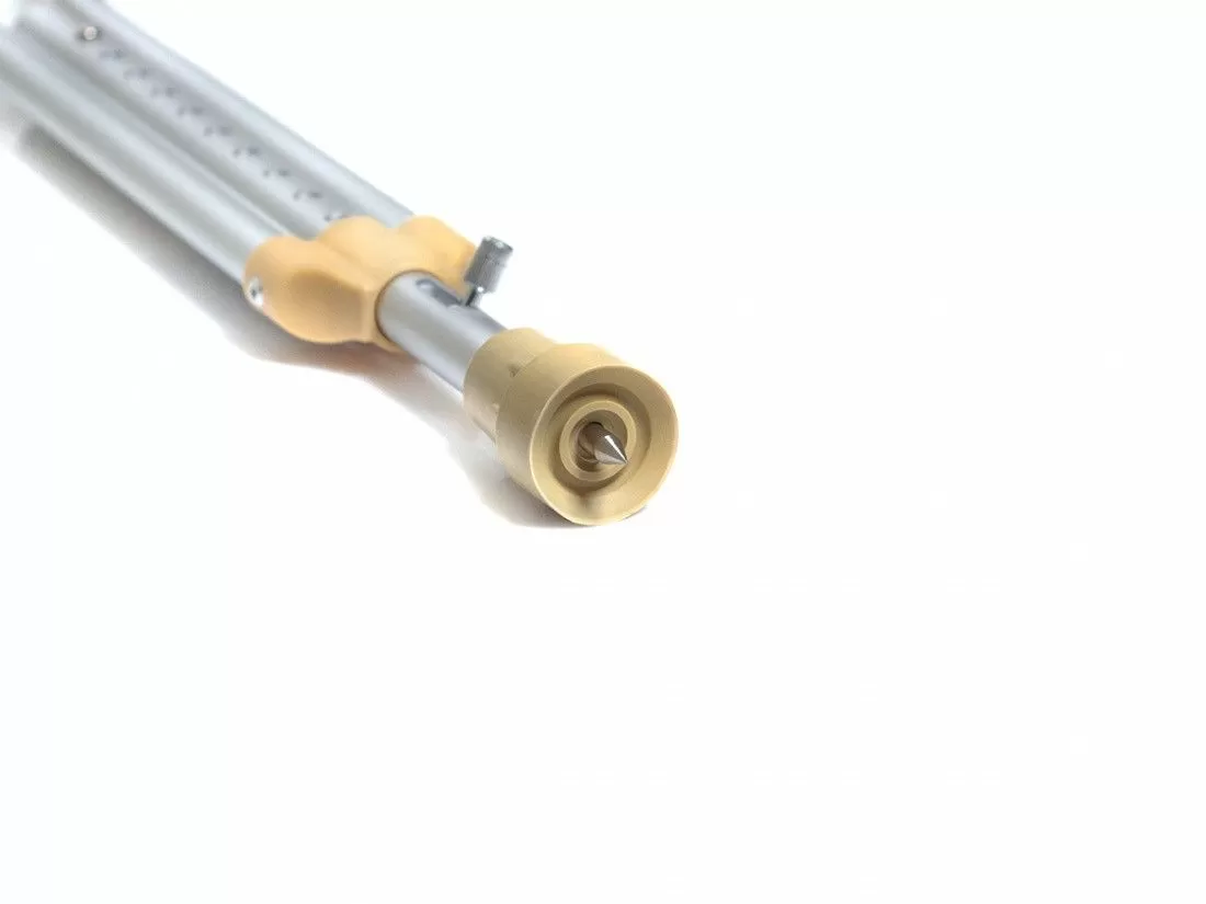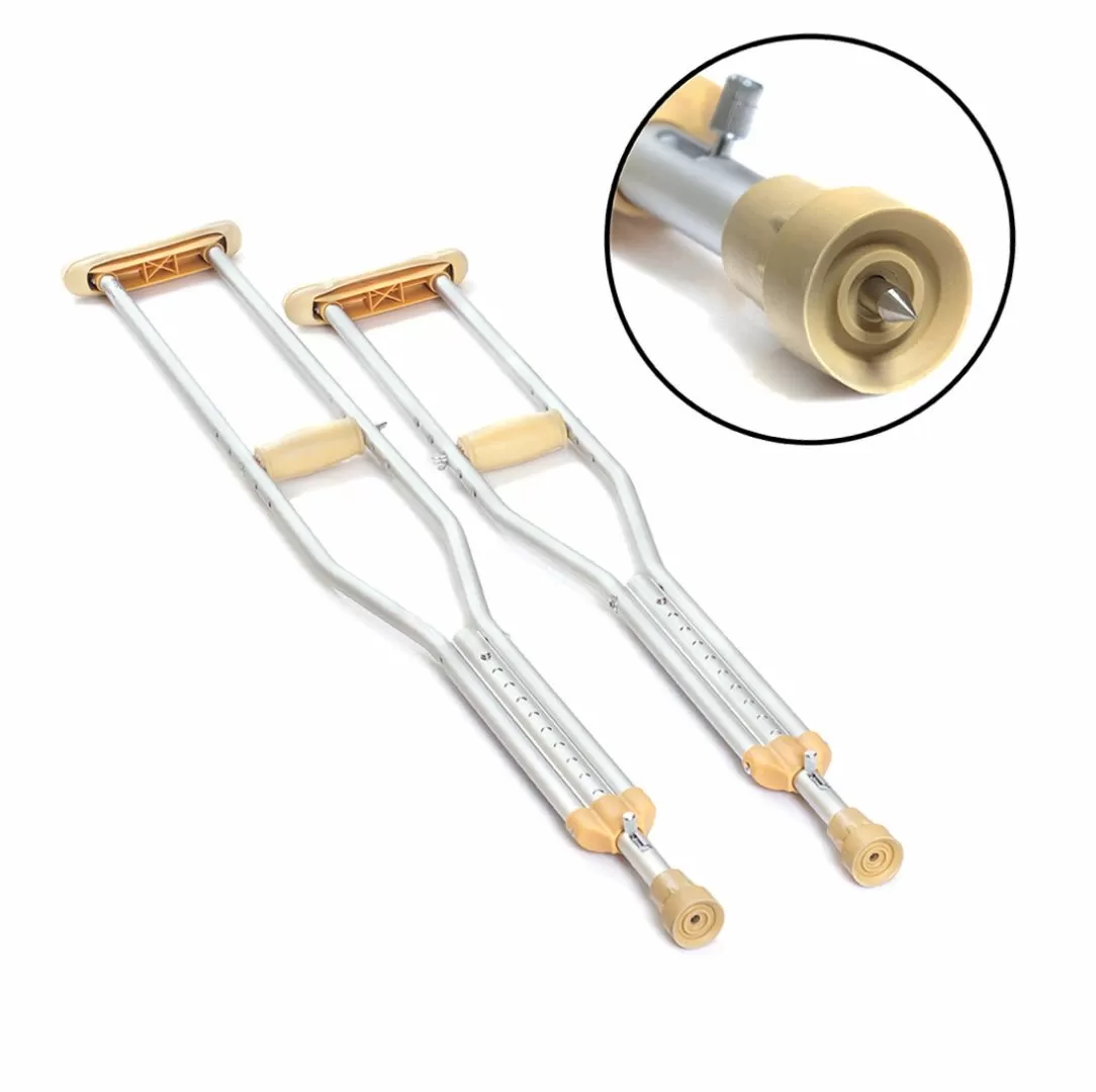 Костыли выполнены из высокопрочного алюминиевого сплава, подмышечные опоры и рукоятка изготовлены из вспененной резины.