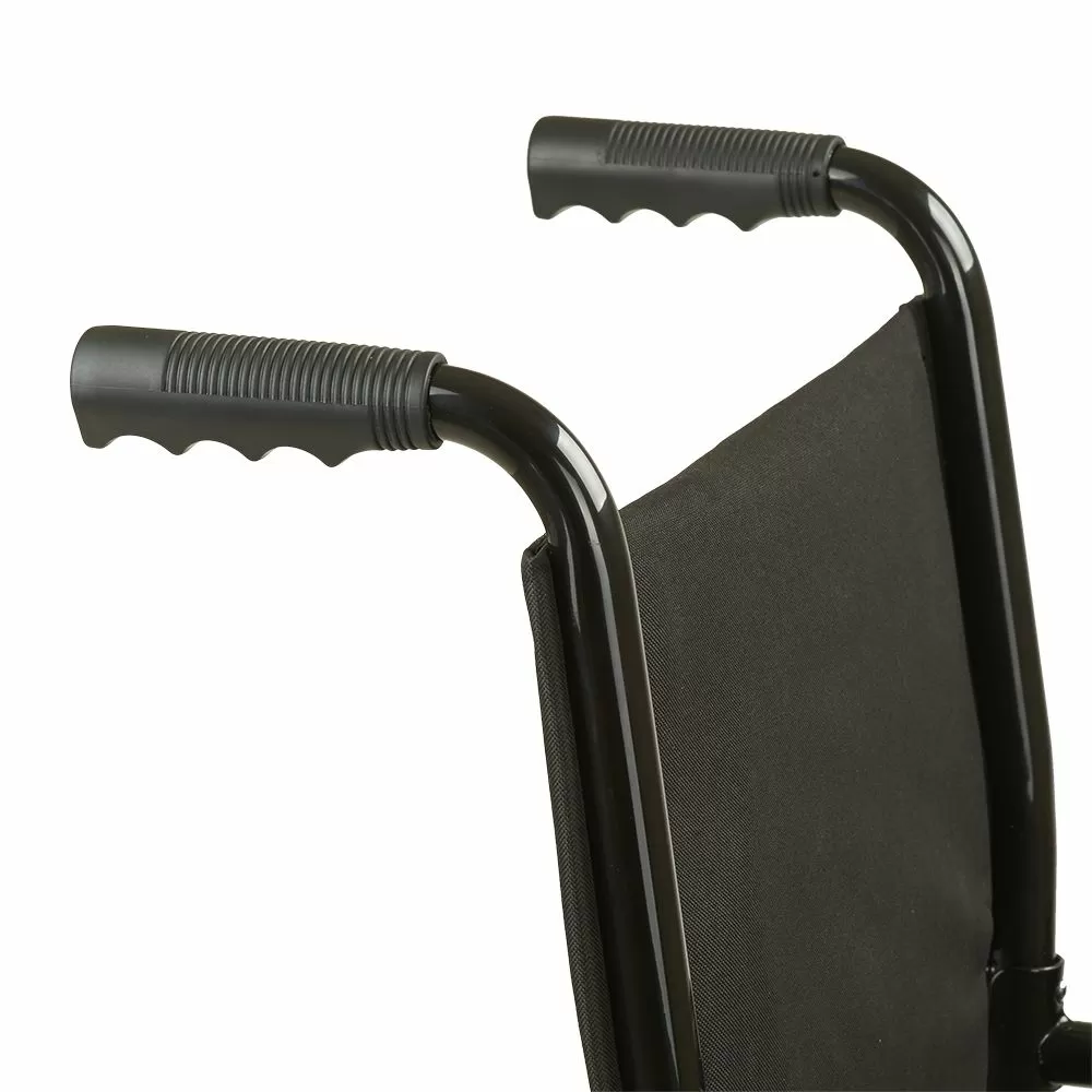 Цельнолитые колеса позволяют с комфортом перемещаться в помещении. Фиксируется положение с помощью стояночного тормоза. Для удобства пересаживания подножки поворачиваются и снимаются. Подлокотники фиксированные с мягкими накладками, и на них удобно опираться. Спинка складывается с помощью рычагов, что освобождает доступ к спине пациента. Рама тоже складная, поэтому каталку получится убрать очень быстро.