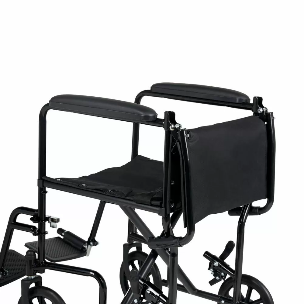 - Поскольку подножки можно откинуть наверх, пересаживаться пользователю значительно легче. Для перевозки при сложении кресла подножки снимаются.