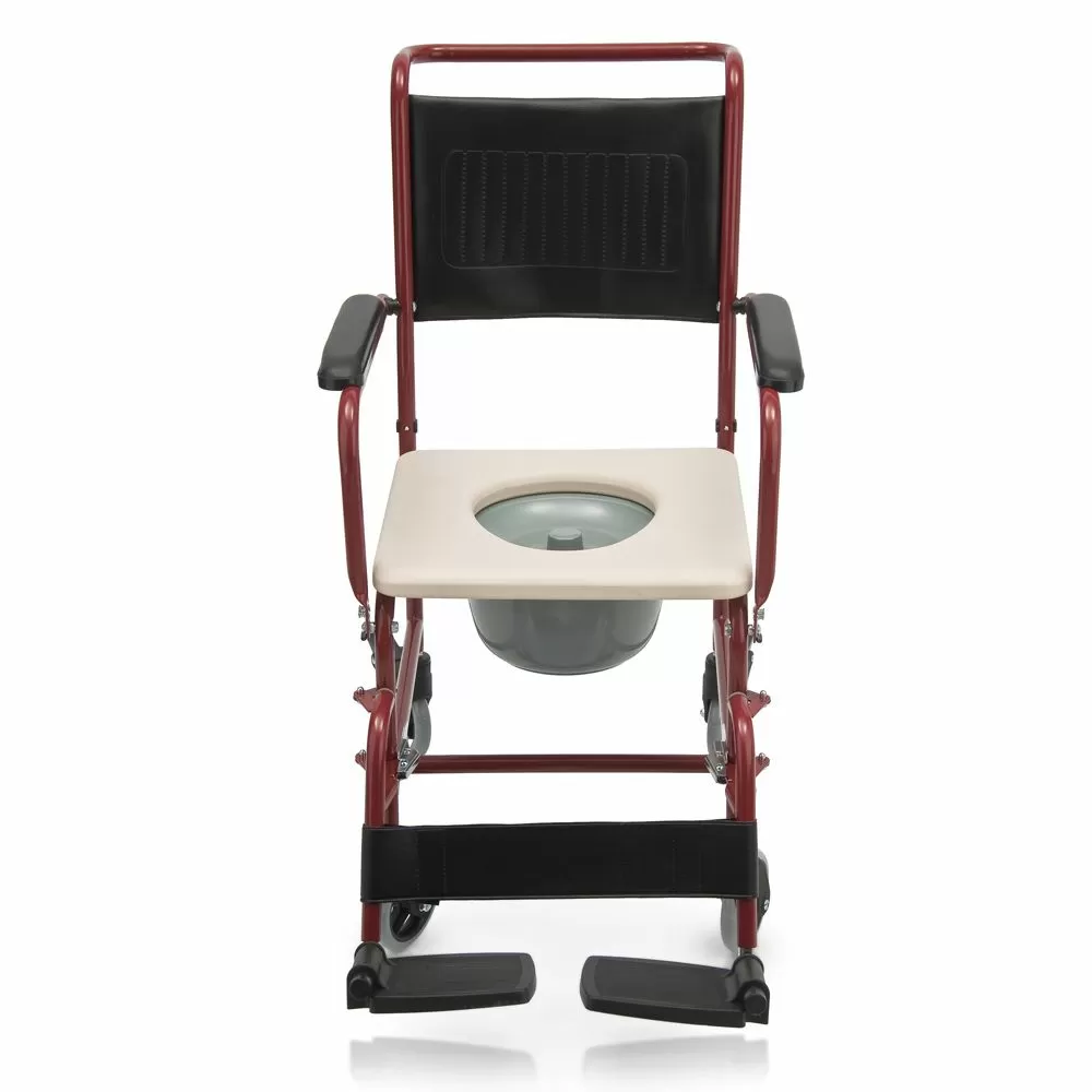 Удобное сиденье и спинка из кожзама, легко устанавливать над унитазом; Откидные подлокотники |