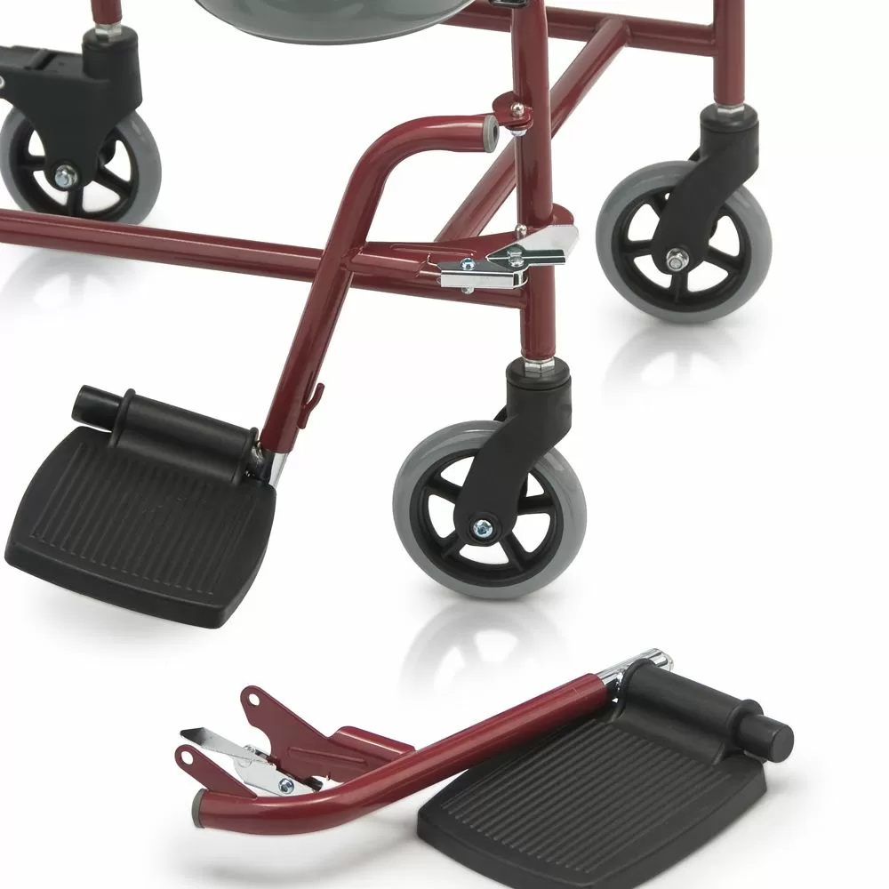 - Кресло оснащено съемными регулируемыми по длине подножками с упором для голеней. Платформы для стоп откидываются, упрощая вставание.