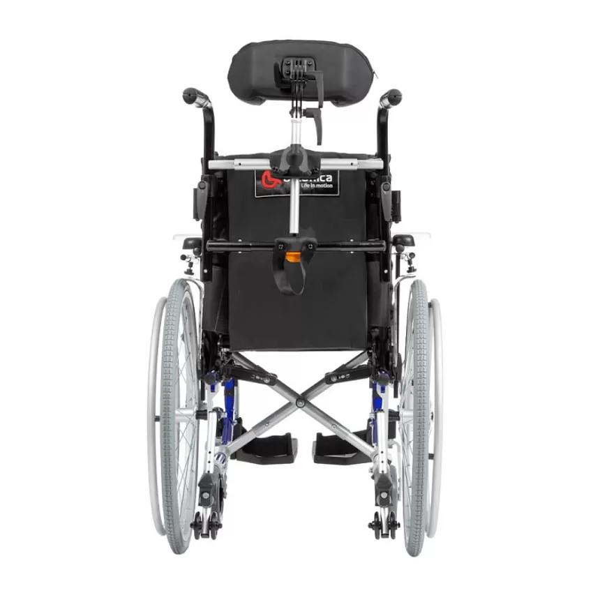 Подголовник и боковые поддержки коляски регулируются по вертикали, горизонтали, углу наклона и обхвату головы, обеспечивая надежную фиксацию и поддержку. Это помогает предотвратить деформации грудной клетки и позвоночника, а также улучшает постуральный баланс. Съемный столик служит дополнительной опорой для верхней части тела, что особенно полезно во время приема пищи.