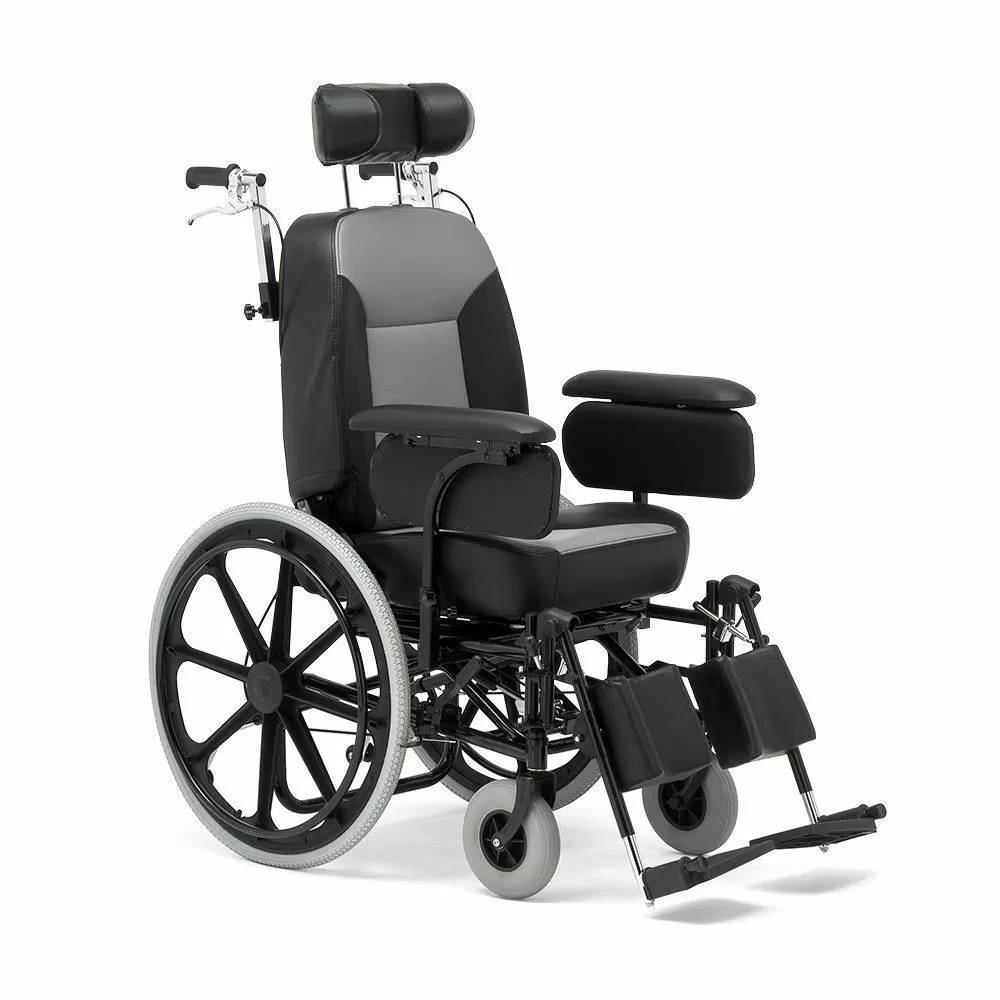 Выдерживает вес до 125 кг. Удобное кресло автомобильного типа. Задние колеса быстросъемные. На рукоятках ручные тормоза для сопровождающего |