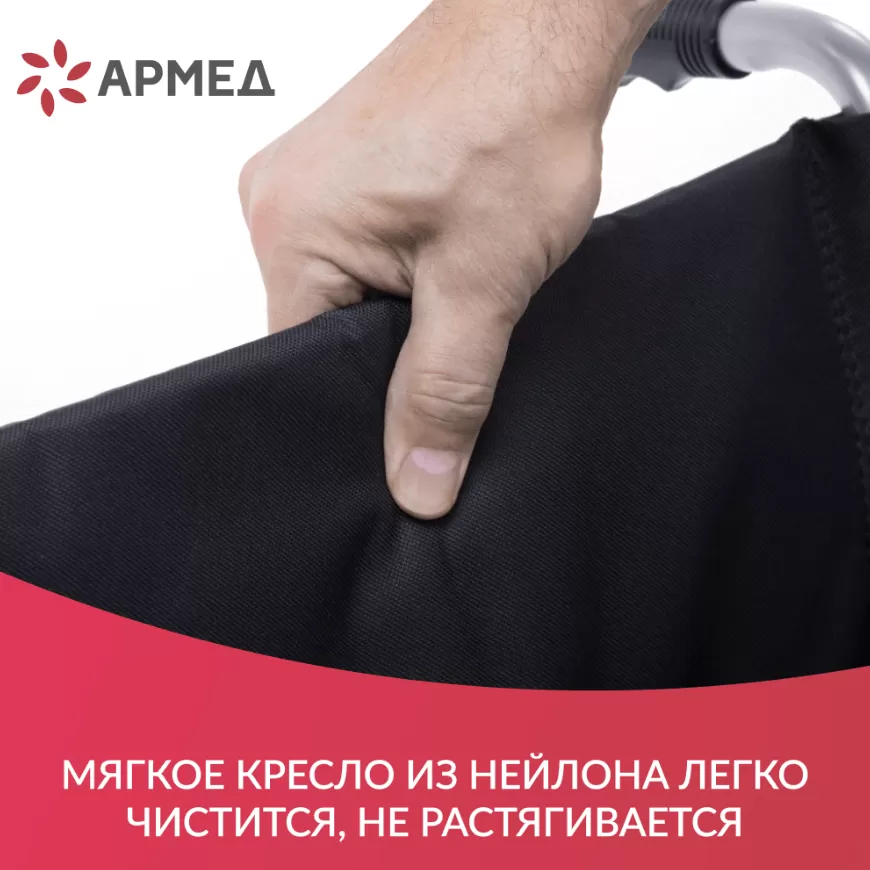 - Удобство сопровождающему обеспечивают ручки с прорезиненными рельефными накладками. На спинке кресла предусмотрен вместительный карман, в который можно положить воду, телефон, салфетки.