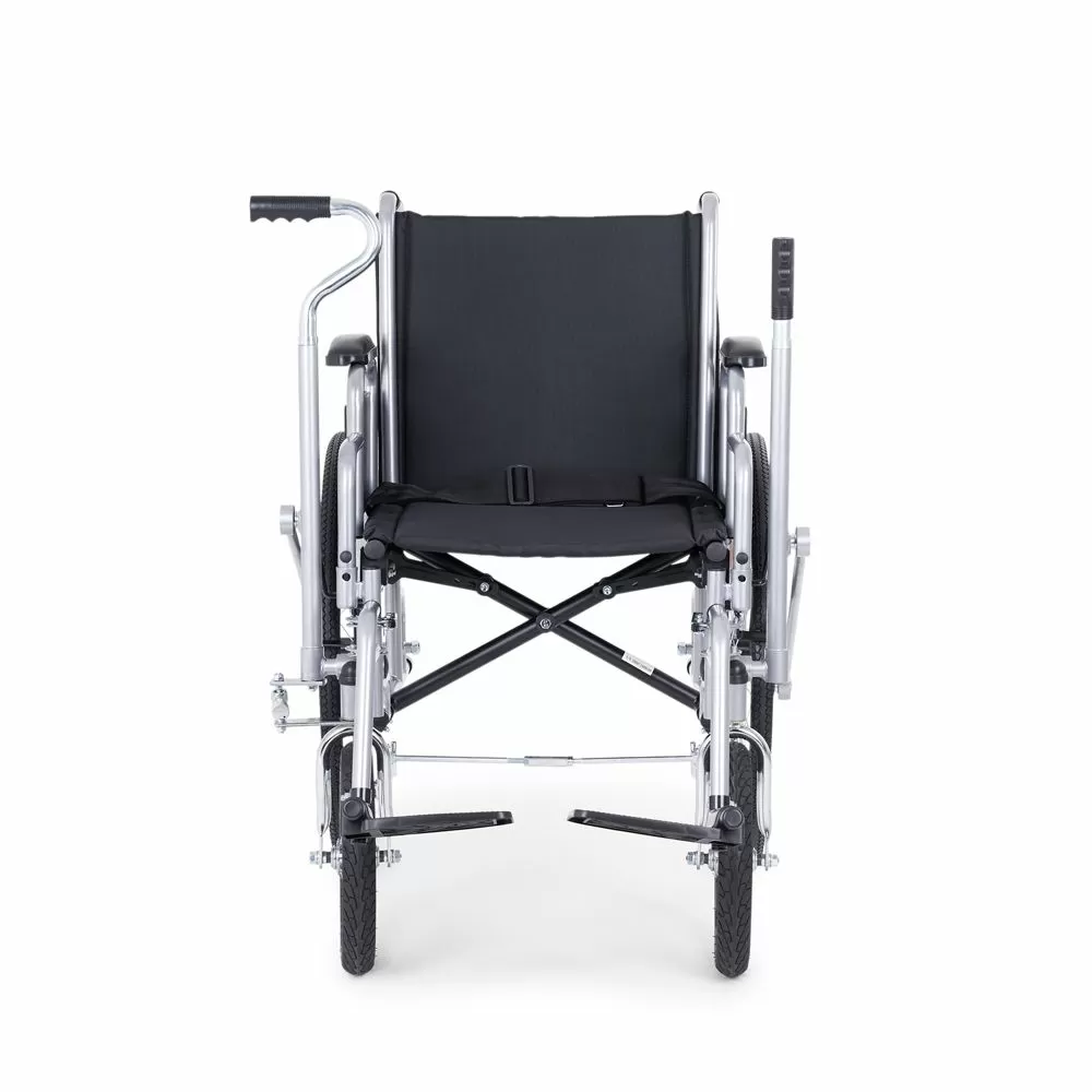 - Сиденье кресла мягкое, изготовлено из прочного и дышащего нейлона, сзади на спинке расположен вместительный кармашек для мелочей. Подлокотники смягчены накладками и снимаются для облегчения усаживания в кресло, для этого же предусмотрены откидные поворотные съемные подножки.