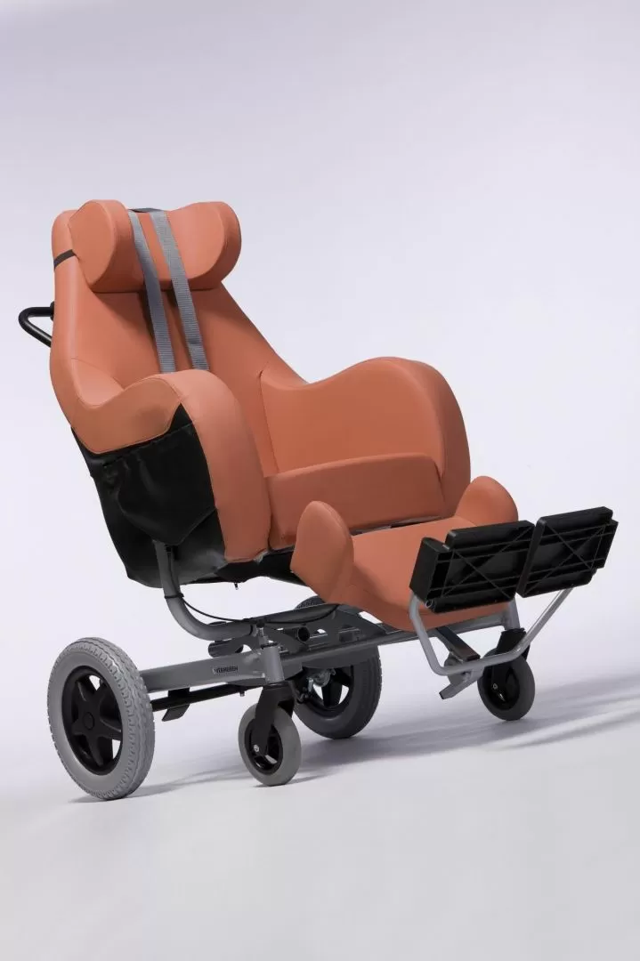 Пользователь может быть перевозим в помещениях или на прогулке. Эргономичные спинка, сиденье, подголовник обеспечивают высокий уровень комфорта. Снижается нагрузка на позвоночник, шею, область таза. Угол наклона спинки можно отрегулировать для наибольшего удобства пользователя. Материал, которым обтянуто сиденье и спинка, воздухопроницаем. Он «дышит».