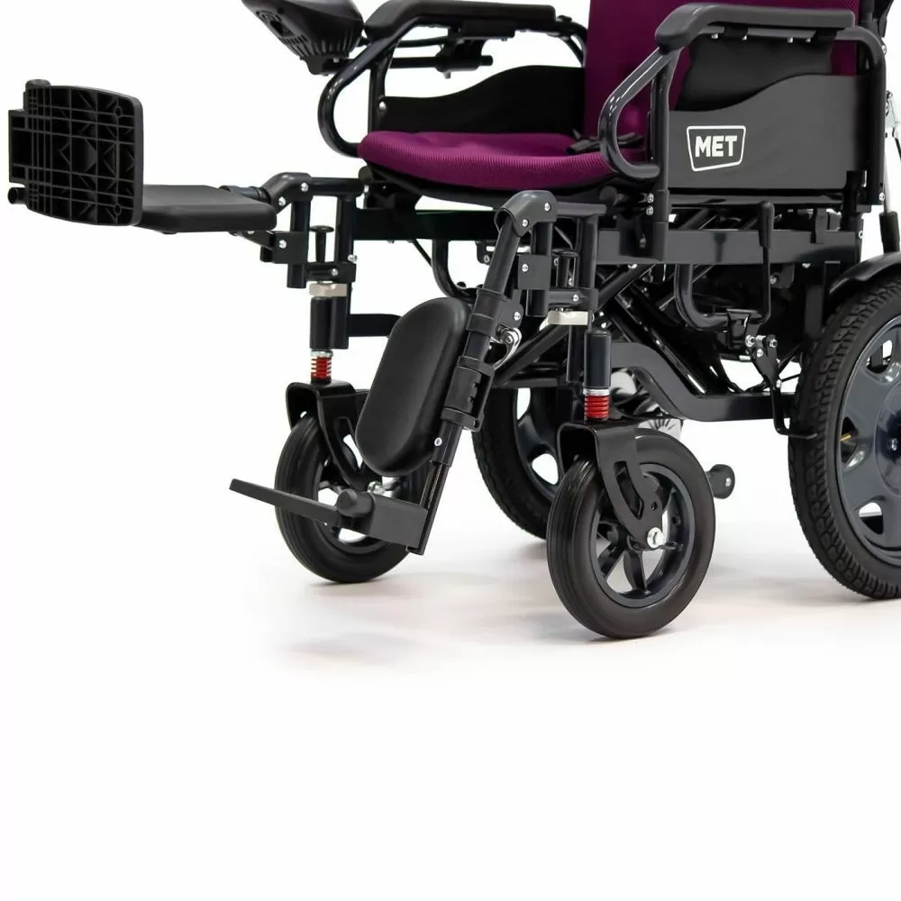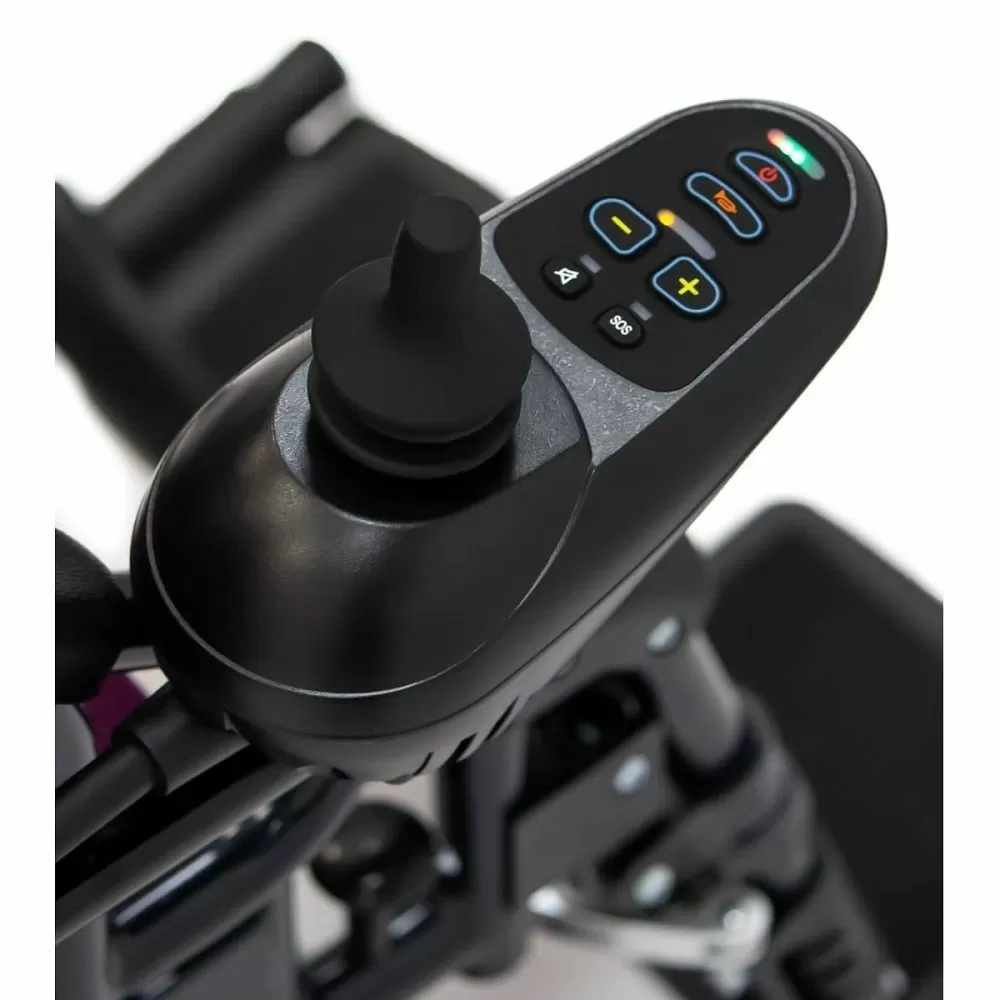 Коляска MET COMFORT 110 имеет механизм, который защищает кресло от опрокидывания и обеспечивает максимальную безопасность пользователю. Спинку кресла можно откинуть назад для большего комфорта, также можно поднять подножки, чтобы принять горизонтальное положение. Контроллер можно разместить как слева, так и справа от пользователя. На нём есть кнопки для подачи звукового сигнала, переключения скоростей, а также функции SOS и отключения звука. Управление движением осуществляется с помощью джойстика.Проходимость и ходовые качества