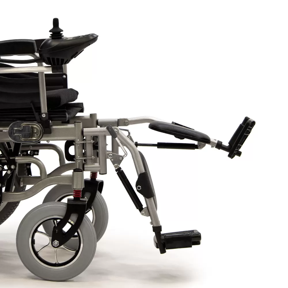Кресло-коляска электрическая оборудована задним приводом, реализованным в виде двух независимых электромоторов на безугловом редукторном соединении с ведущими колёсами. Такой тип электропривода наиболее надёжен и прост в обслуживании, так как достигается максимальная простота механических соединений.