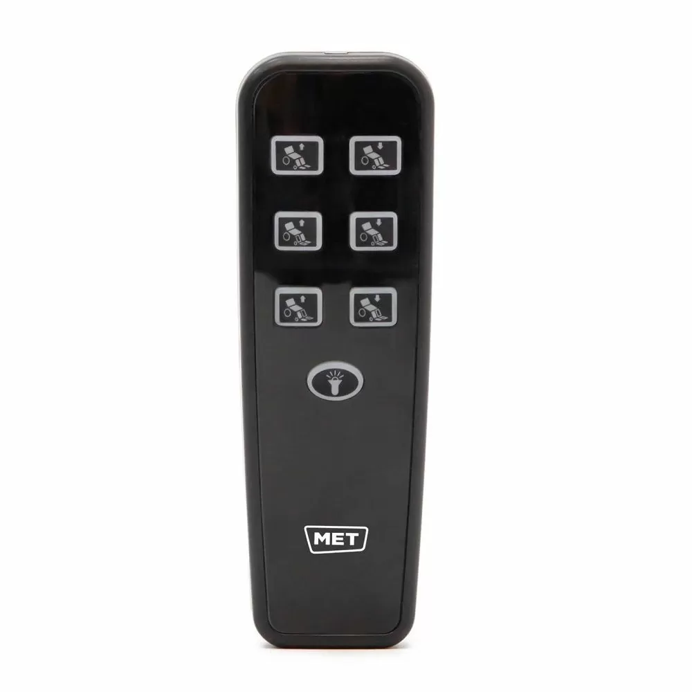 Коляска MET COMFORT AUTO имеет защитный механизм, который не дает креслу опрокинуться. Спинку коляски и подножки можно легко отрегулировать с помощью кнопок на пульте управления. Контроллер может быть расположен рядом с подлокотником как с правой, так и с левой стороны, что делает управление удобным не только для правшей, но и для левшей. На контроллере расположен джойстик для управления, рядом с ним находятся кнопки переключения скоростных режимов, кнопка звукового сигнала, кнопка SOS.Проходимость и ходовые качества
