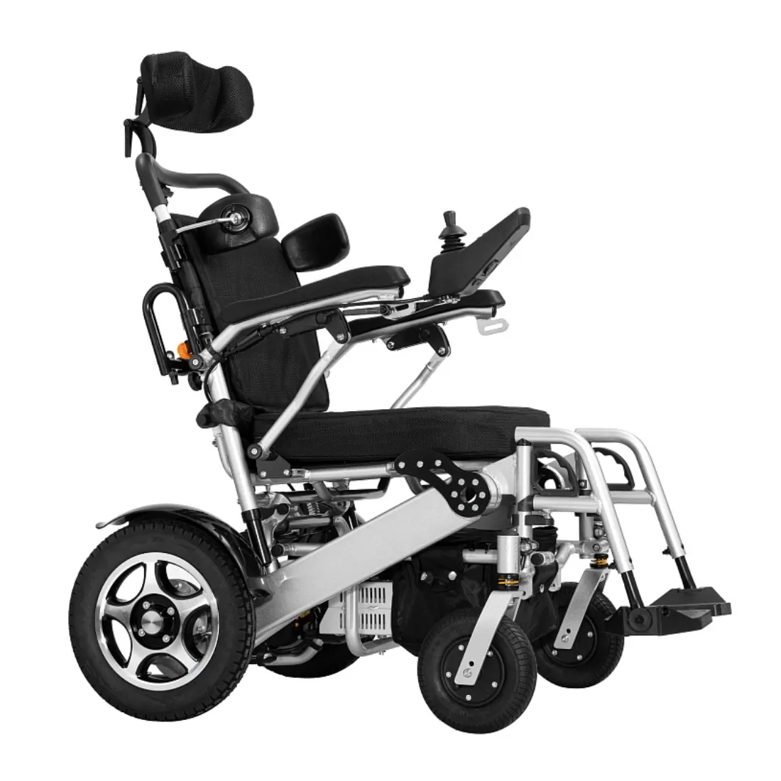 Коляска оснащена регулируемым подголовником и боковыми поддержками обеспечивающие правильную посадку пользователя.