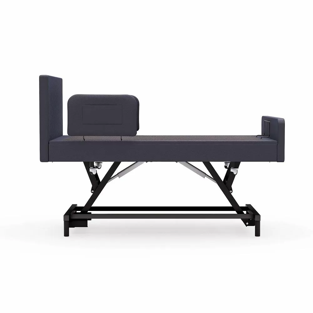 - Регулировка высоты ложа. Высота ложа плавно регулируется электроприводом, позволяя без усилий подобрать идеальное положение. В нижнем положении кровать обеспечивает безопасность при использовании, а в верхнем - значительно облегчает уход за лежачими пациентами, а также замену постельного белья, минимизируя нагрузку на спину.