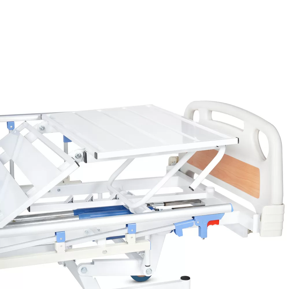 - Безопасность пациента обеспечат два боковых ограждения, которые легко поднимаются и опускаются легким нажатием клавиш. Также ограждения используются для установки надкроватного столика.