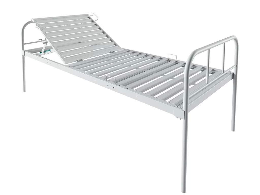 Медицинские кровати с механической регулировкой секций предназначены для ухода, диагностики, лечения и наблюдения за пациентом в стационарных медицинских учреждениях, и в домашних условиях.- двухсекционное ложе с жестким стальным каркасом