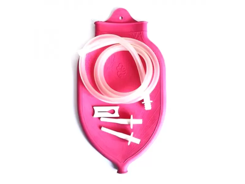 В комплект кружки Эсмарха входит корпус резиновой грелки с вмонтированной втулкой, пробка, винтовой затвор со сквозным отверстием, наконечники для детей, взрослых и маточный наконечник, резиновая трубка, зажим.