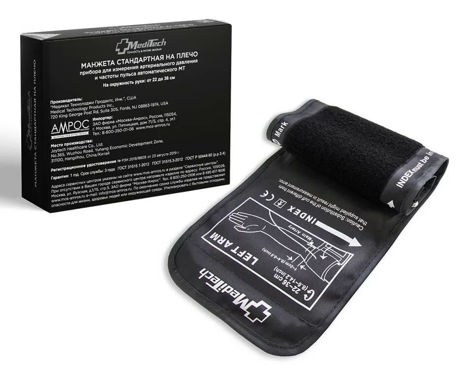 Подходит для автоматических тонометров MediTech (модели на плечо МТ-30, МТ-40, МТ-50) и предназначена для измерения артериального давления у взрослых с окружностью плеча 22-36 см