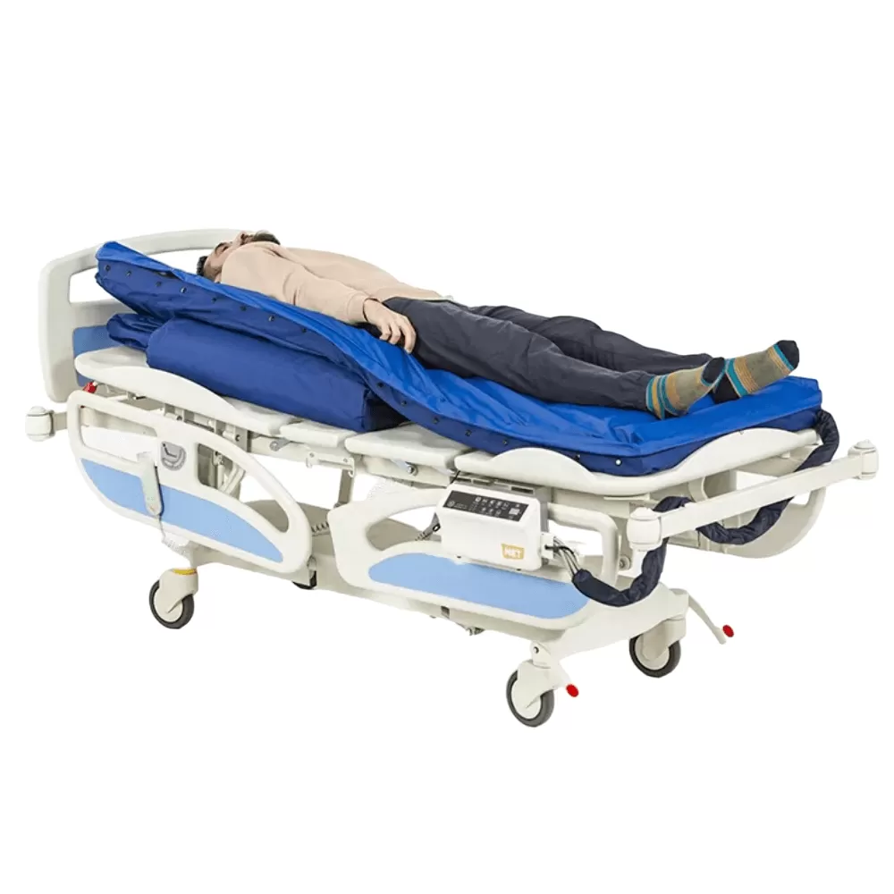 Противопролежневая система может работать в двух режимах: в динамическом режиме, при котором циклично меняется степень наддува различных ячеек матраса, и в статическом режиме, когда все ячейки постоянно надуты. Плотность наддува ячеек регулируется в зависимости от веса больного.Функции Сидения и Переворот