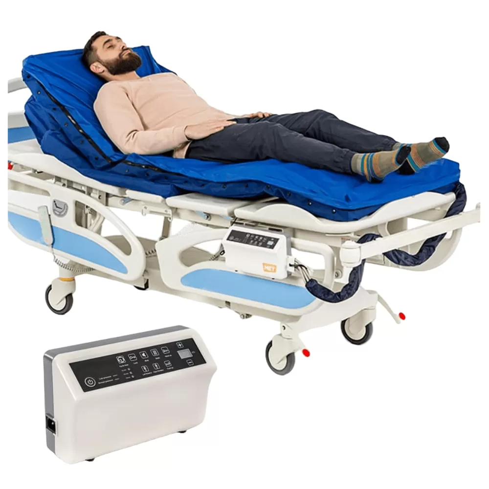 Таким образом, MET AIR BRIO не только оказывает профилактическое и лечебное действие на пролежни, но и дает те же преимущества, что и функциональная кровать. Система позволяет принять сидячее положение для полной вентиляции легких, поднятие ног для борьбы с варикозом и отечностью, переворот для разгрузки сердечной мышцы, и в целом облегчает уход за пациентом.