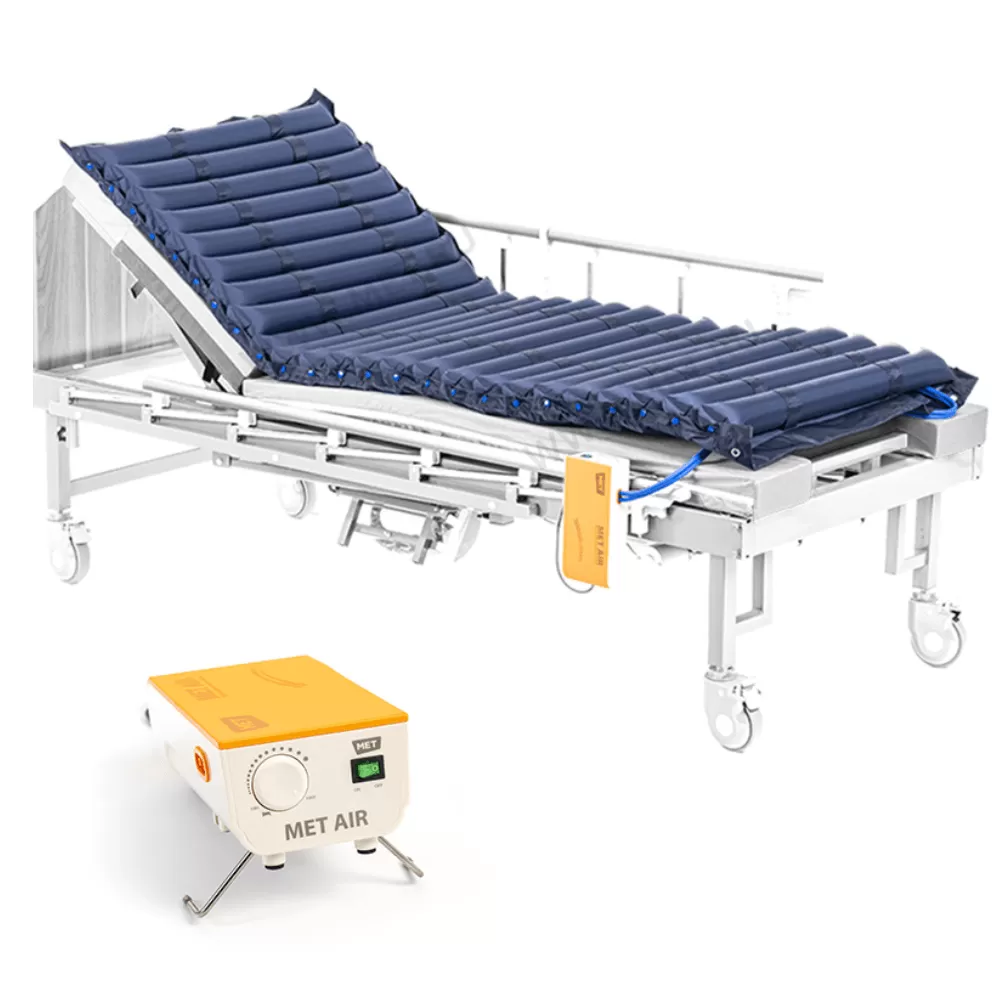 Малогабаритный электрокомпрессор размещается на полу или на боковой панели кровати. Регулировка задаваемого давления осуществляется в зависимости от массы пациента. Противопролежневый матрас обладает эффектом непрерывного массажа, предотвращает застои и не дает развиваться некрозу мягких тканей лежачего пациента.