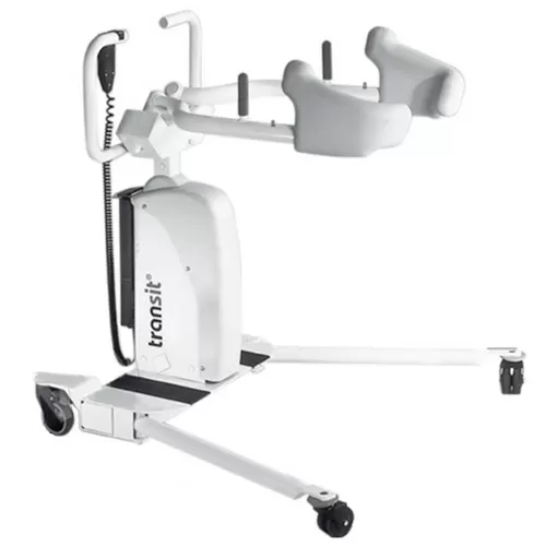 Простое и быстрое повторное размещение из положения сидя на другое сидячее положение. Позволяет осуществлять транзит инвалида в санитарный сектор: безопасным нажатием ручного переключателя сиделка осторожно поднимает, перемещает и устанавливает снова на требуемый объект сидения. Перемещение осуществляется на эргономичных мягких плечевых ограничениях, как принято на костылях.