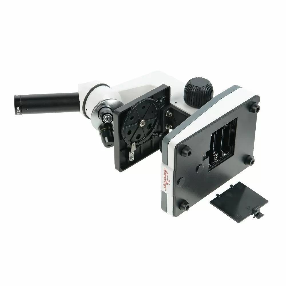 - Питание от батареек типа АА позволяет пользоваться микроскопом не только в учебном классе или дома, но и в любых ситуациях, когда электросеть недоступна. Использование дополнительно приобретаемого сетевого адаптера на 5В позволяет подключить осветитель микроскопа к бытовой электросети 220 – 240 В.