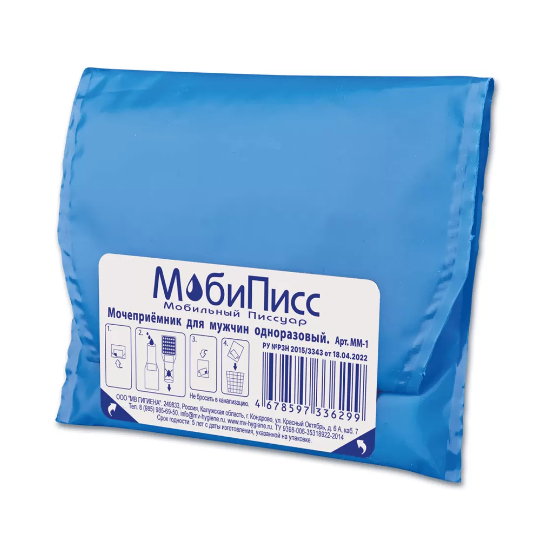 Мочеприемник для мужчин одноразовый МобиПисс ММ-1 предназначен для использования в местах, необорудованных стационарными туалетами, транспортных пробках, госпиталях и реабилитационных центрах, а так же при проведении строительных работ, при выполнении спецопераций военными и правоохранительными органами и т.д.