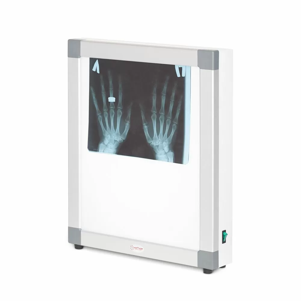 Негатоскоп общего назначения – это компактный медицинский 1-кадровый прибор для быстрого просмотра рентгеновского снимка, оборудованный светодиодным источником освещения. Смотровой экран изготовлен из молочного акрилового стекла, который равномерно рассеивает свет по всей площади. Рентгенограммы легко устанавливаются в пазы экрана для удобного просмотра. Внутри корпуса установлены светодиодные лампы, которые обеспечивают необходимую яркость свечения.