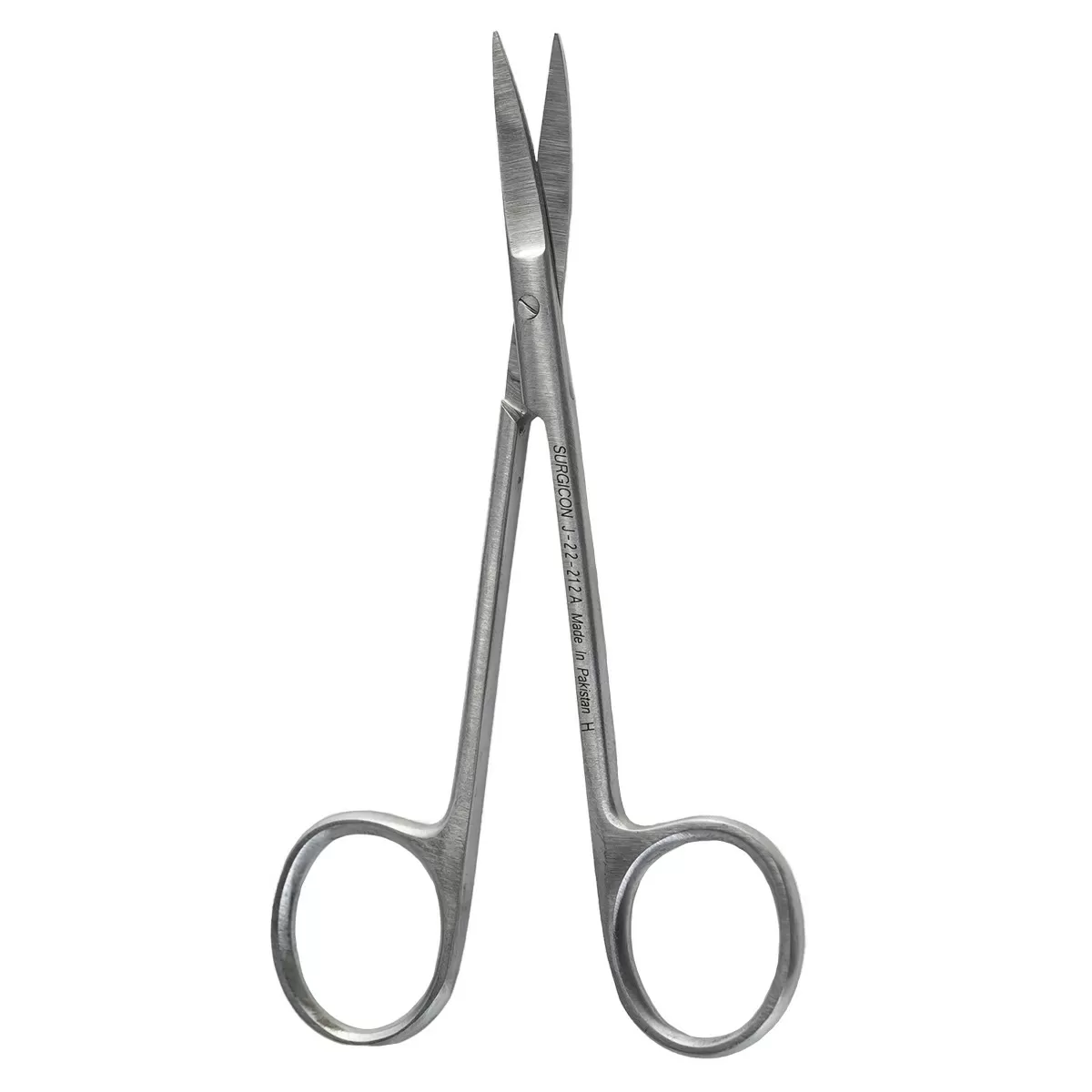 Двухлезвийный режущий медицинский инструмент с кольцевыми ручками для рассечения век и тканей глаза при операциях, рабочие части должны быть узкими остроконечными и вертикально изогнутыми