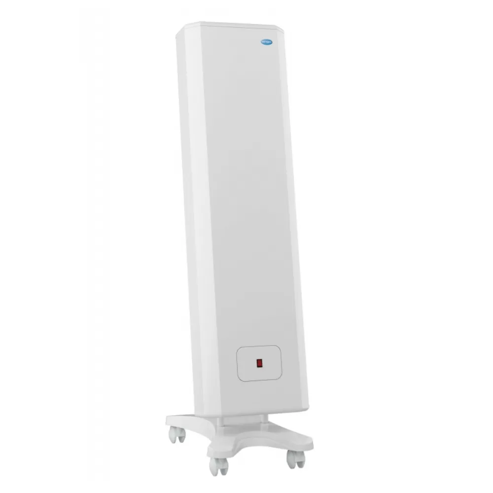 Рециркулятор бактерицидный МСК-908.3 на пластиковой передвижной платформе предназначен для обеззараживания воздушной среды в отделениях, палатах и кабинетах лечебно-профилактических, дошкольных и школьных учреждений, производственных и других организациях.Безопасен при использовании в присутствии людей. Обеззараживание воздушного потока происходит в процессе его принудительной циркуляции через металлический корпус при помощи 2-х вентиляторов. Внутри корпуса размещены 3 лампы по 30 Вт - безозоновые бактерицидные низкого давления Ledvance. Ультрафиолетовое излучение ламп уничтожает болезнетворные микроорганизмы, и чистый обеззараженный воздух после циркуляции по лабиринту воздуховода возвращается в помещение. Для свободной циркуляции воздуха рециркуляторы рекомендуется размещать на стене или на передвижной платформе.