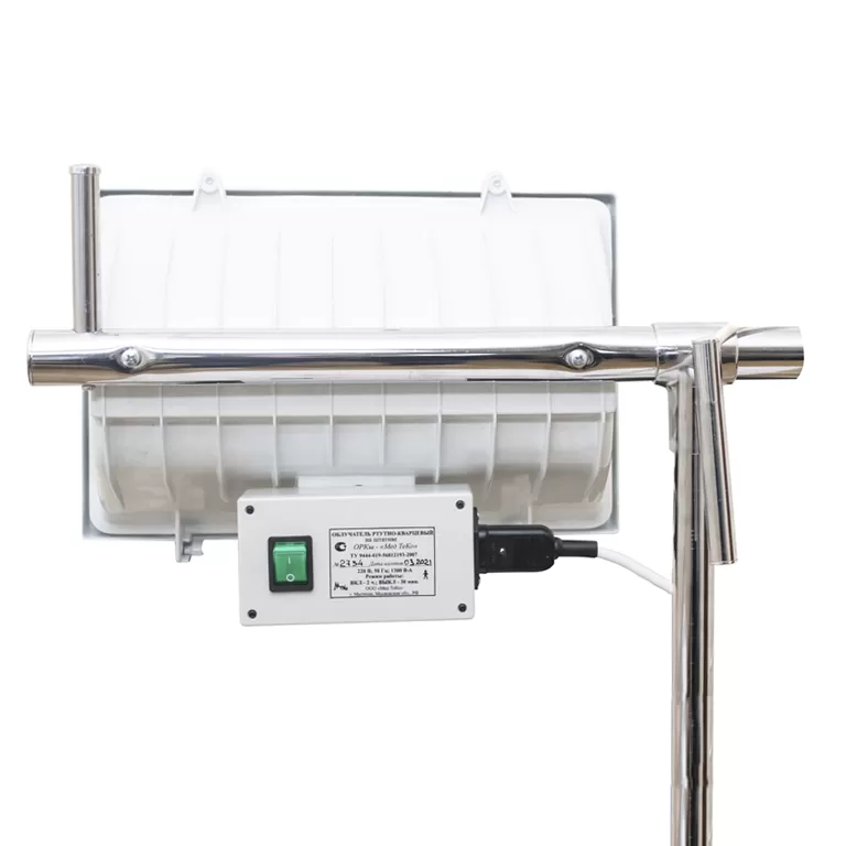 - Облучатель ртутно-кварцевый на штативе «ОРКш-Мед ТеКо». Применяется для общих и местных облучений интегральным УФ-излучением.