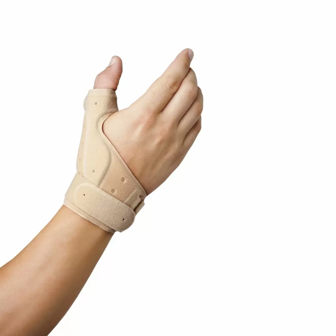 - Стабилизация фаланго-пястного сустава большого пальца за счет металлической V-образной шины и нерастяжимого материала, что позволяет использовать ортез вместо гипсовой повязки.