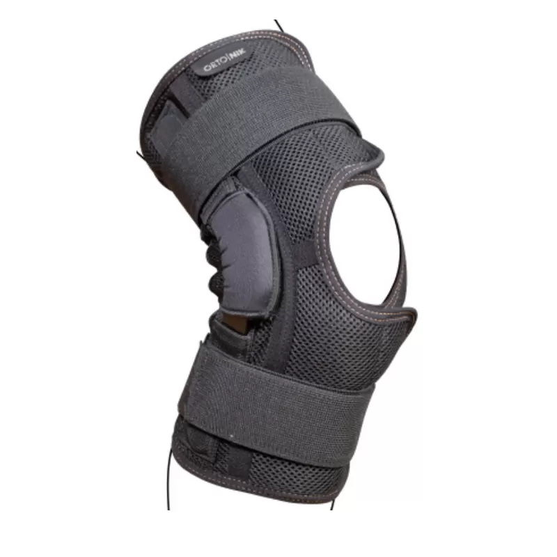 Бандаж на коленный сустав ORTO.NIK КС-615 с малоэластичной разъемной основой анатомической формы, пателлярным полукольцом, боковыми полицентрическими шарнирными вставками и силиконовой лентой на внутренней поверхности бандажа. Фиксация осуществляется с помощью двух эластичных ремней, основы и застежек "Велкро".