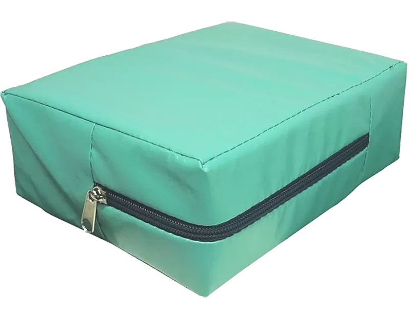 Чехол для подушки изготовлен из клеенки медицинской с ПВХ покрытием с пенополиуретановой вставкой, на молнии. Материал чехла для подушки представляет собой полиэфирную тканевую основу, покрытую эластичным слоем поливинилхлорида. Микроструктура ПВХ-слоя и его поверхности влагостойкая, не пропускает биологические жидкости.