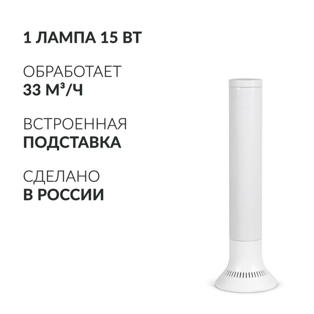 Простой и удобный прибор отечественного производства, очищающий воздух в помещении от вирусов и бактерий. Производительность 33 м³/ч, наличие встроенного фильтра и подставки, а также универсальный, лаконичный дизайн делают эту модель одной из самых популярных для дома и небольших общественных помещений.Особенности