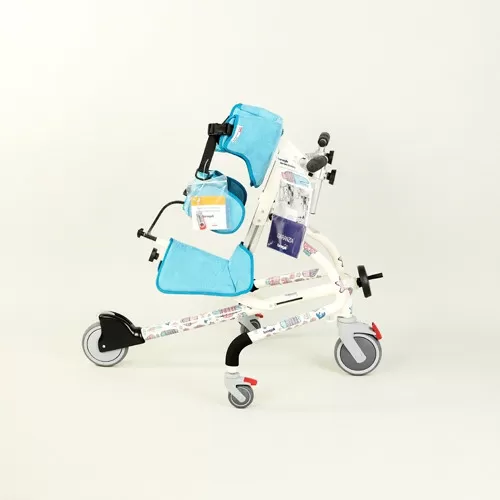 Роллаторы оснащены регулируемыми опорами, которые обеспечивают ребенку полную безопасность во время ходьбы и побуждают его делать первые шаги. Поскольку основная грудная опора наклонена вперед, центр тяжести ребенка смещается в нужном направлении. В таком положении даже ребенок с патологией разгибательной группы мышц, может (хотя бы минимально) задействовать нижние конечности и пользоваться важнейшим функциональным преимуществом ходьбы: исследовать окружающее пространство.