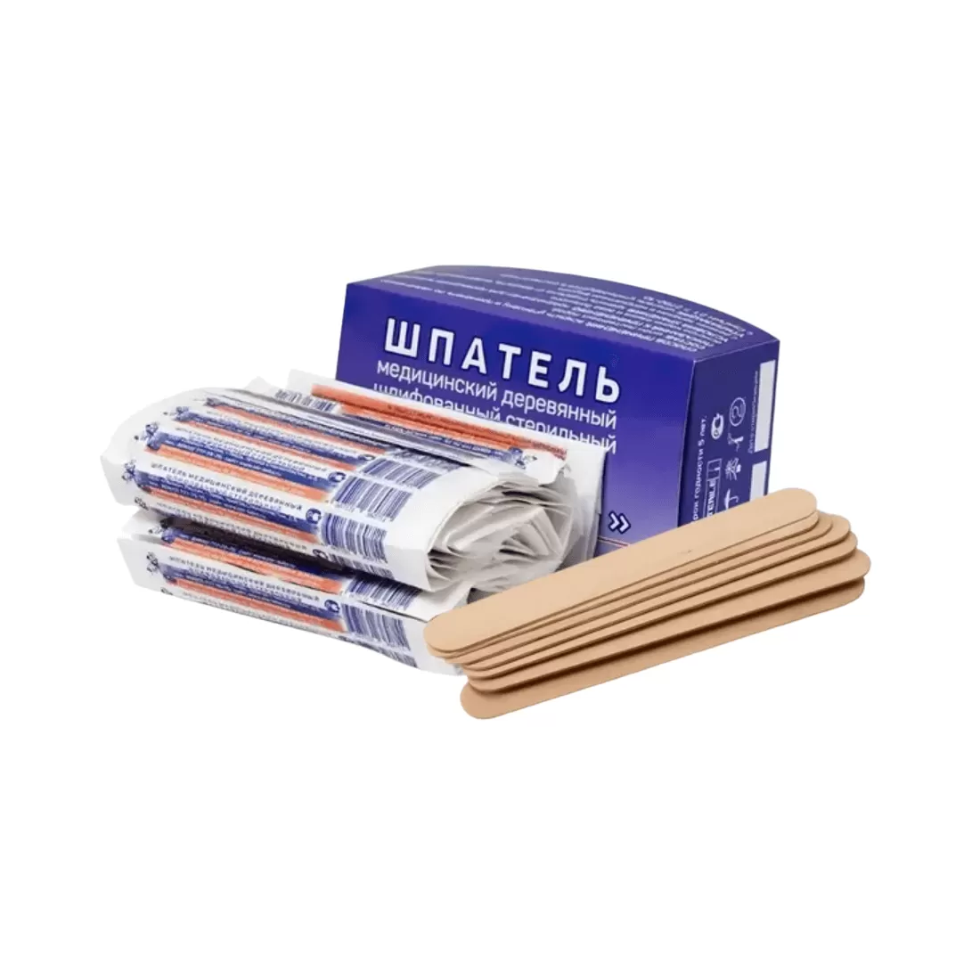 Медицинский шпатель представляет собой стерильное приспособление 140х18х1,8мм, предназначенное для безопасного взятия соскоба со слизистой оболочки рта.