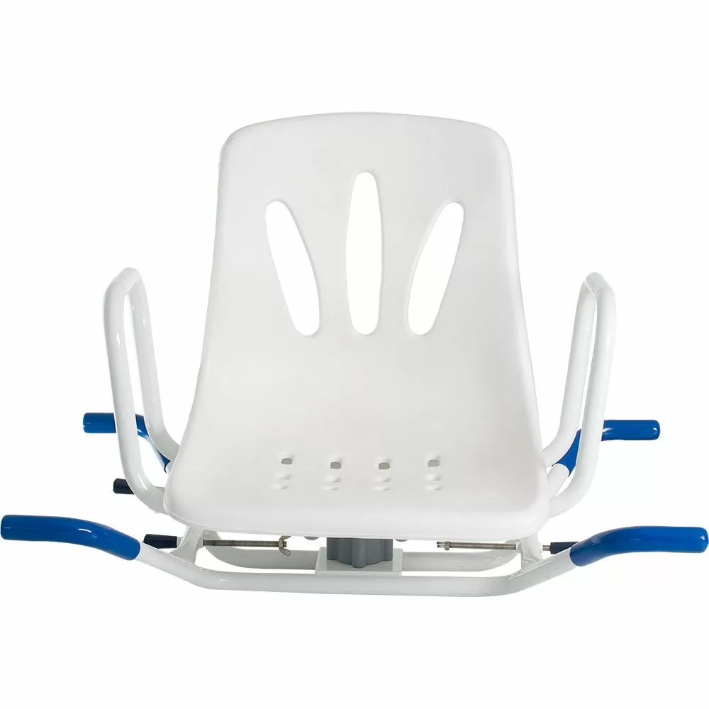 Сиденье снабжено поворотным механизмом, с помощью которого можно развернуть его на 90 градусов. Такой механизм делает использование сиденья еще легче и безопаснее: для того чтобы сесть, нужно будет повернуть сиденье к себе, сесть, приподнять ноги и развернуться в ванну. Усилий потребуется еще меньше, чем с обычными сиденьями. Есть фиксаторы положения, которые предотвратят спонтанные повороты кресла.